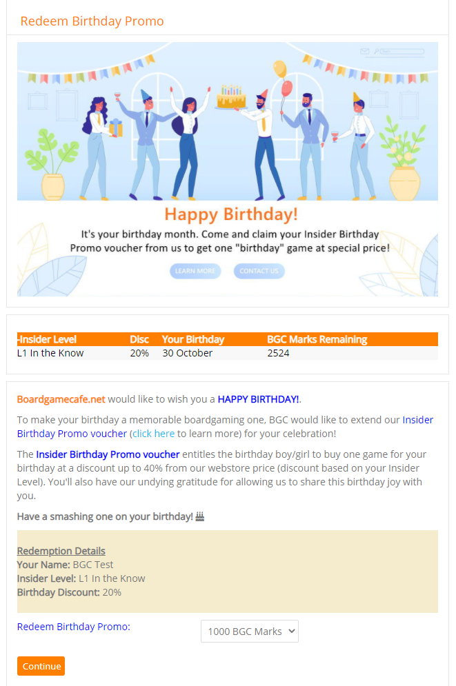 Redeeming your Birthday Promo Coupon (with BGC Marks)