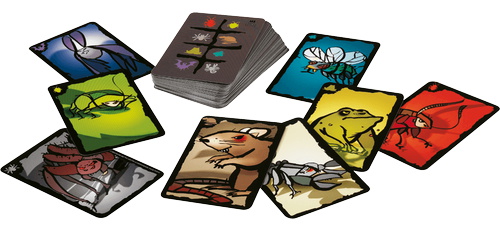 The deck includes 64 cards, with eight copies of eight types of critters. To set up the game, shuffle the deck and deal the cards out to players.