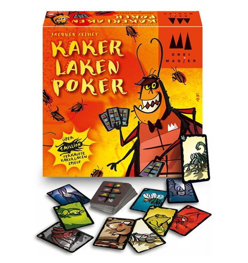 Kakerlaken Poker (also called Cockroach Poker) is a reverse set collection game that has nothing to do with poker – except that the game is all about bluffing, but with cards that show cockroaches, rats and stink bugs instead of queens, 10s and aces. The goal of the game is to force another player to collect 4 of any one type of critter.