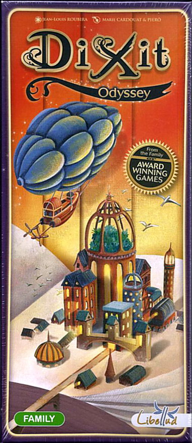 Dixit Odyssey contains 84 cards for use in any of the Dixit standalone games. These cards – with artwork drawn by Pierô and colored by Marie Cardouat, artist of Dixit and Dixit 2 (a.k.a. Dixit Quest) – were originally included in the Dixit Odyssey standalone game released in 2011, but have since been repackaged as an expansion item that consists solely of cards and no other components.