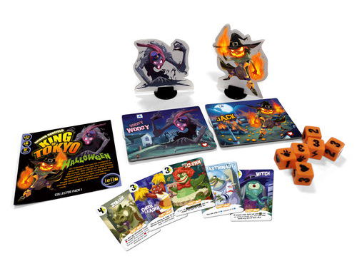 King of Tokyo: Halloween, which is subtitled "Collector Pack 1", includes two new monsters for use with the King of Tokyo base game: Pumpkin Jack and Boogie Woogie. What's more, each monster comes with its own set of eight Evolution cards – first introduced in King of Tokyo: Power Up! – so that each monster can mutate into an even more nightmarish version of itself!