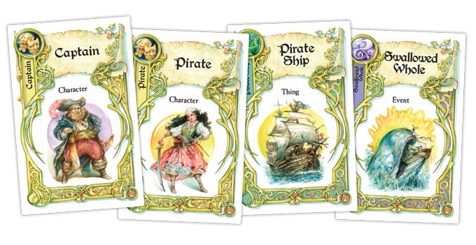 Add pirates, deep sea adventure, and buried treasure to your Once Upon a Time games. Because who doesn't want to befriend a mermaid who can teach them to breathe underwater and lead them to the plunder hidden away in a sunken pirate ship? Spin your own pirate yarns and add more variety to your game with this expansion.