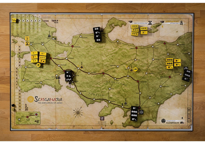Each player must rally the several daimyo of his coalition, managing the morale and motivation of each clan. The forces are dispersed, and while there are reasons to unify them, the objectives are also dispersed, and the timeframe compact, so skirmishing will occur all over the island.