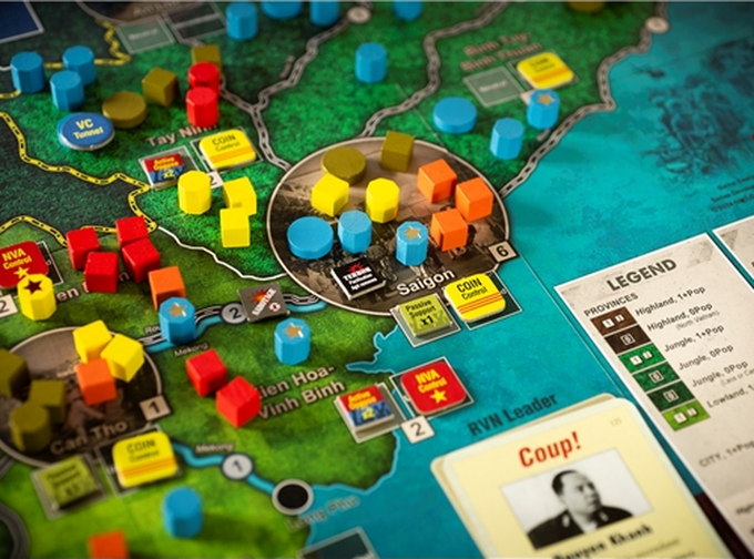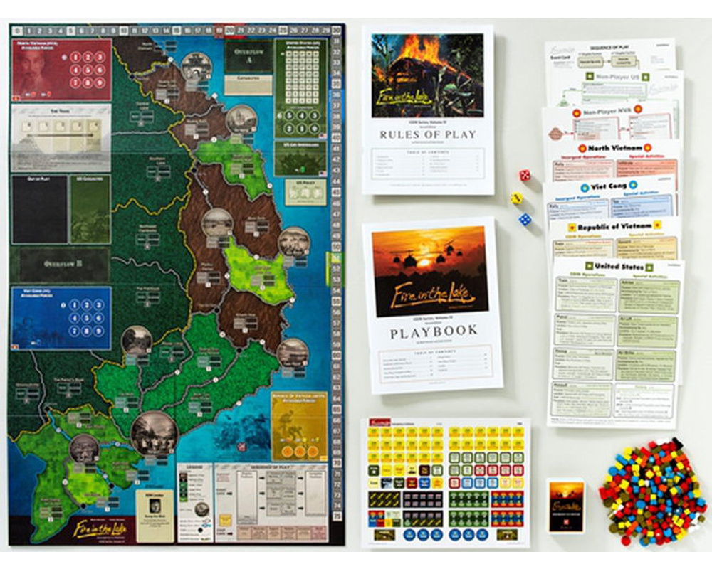 Volume IV in GMT’s COIN Series dives headlong into the momentous and complex battle for South Vietnam. A unique multi-faction treatment of the Vietnam War, Fire in the Lake will take 1 to 4 players on US heliborne sweeps of the jungle and Communist infiltration of the South, and into inter-allied conferences, Saigon politics, interdiction of the Ho Chi Minh Trail, air defense of Northern infrastructure, graduated escalation, and media war.