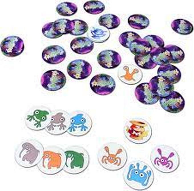 A number of "monster" tiles are spread face down on the table. The aim of the game is to collect as many families of three identical monsters as possible, without being fooled by similar-looking impostors!