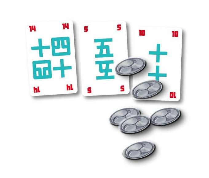 The rules are simple: Each round, players take a turn and either discard their card face up in front of them and take a new one from the deck, or turn a card from the deck to replace the current Kobayakawa. After each player has taken a turn, they each decide if they want to compete for this round by putting a crest token on their card. Players that decided to compete then all reveal their card at once and compare their number.
