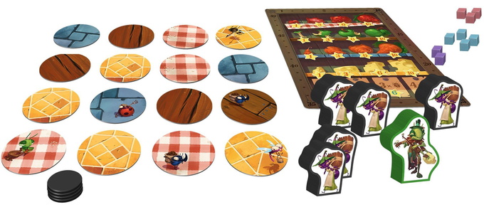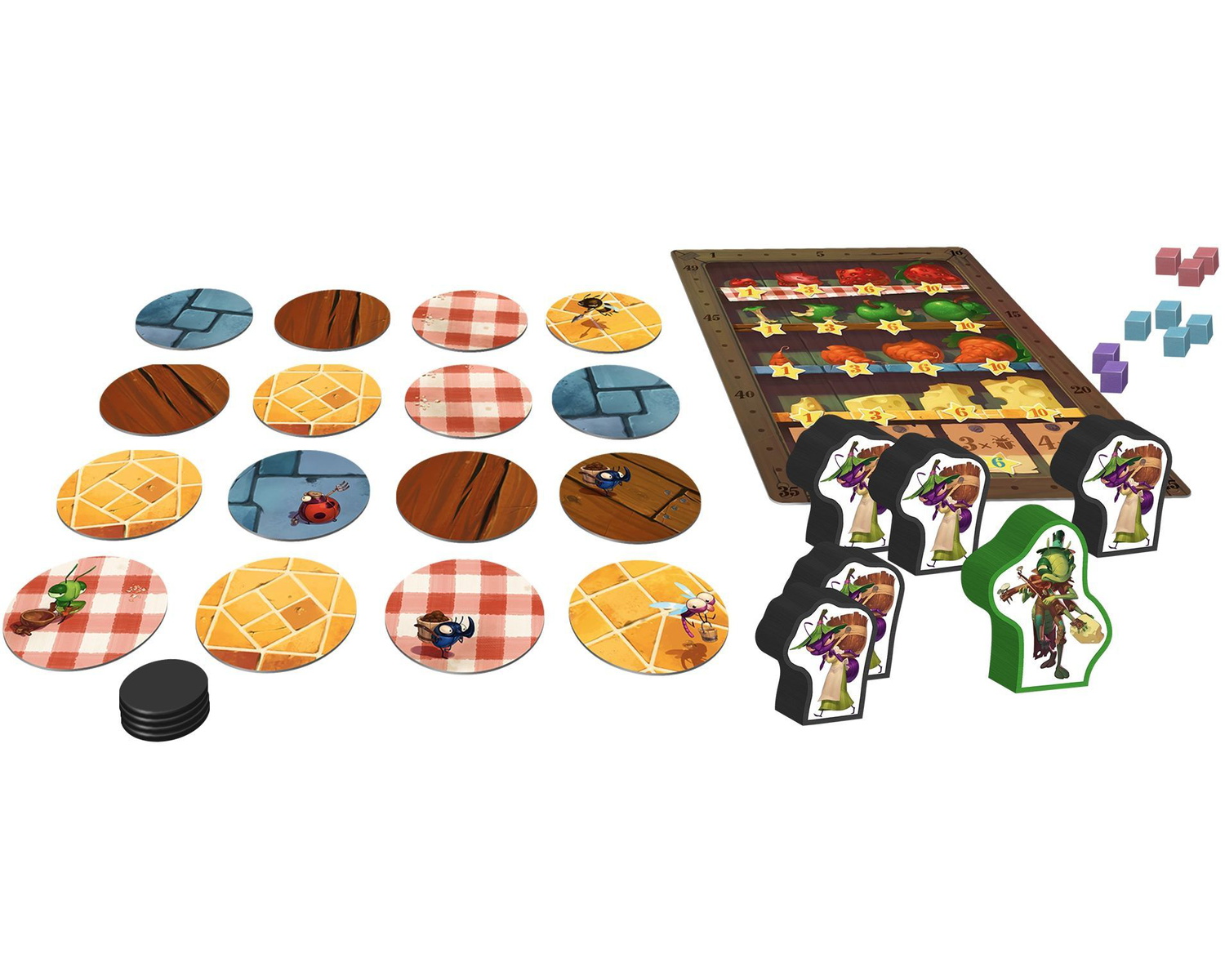 In winter mode, players keep the path cards they collect in order to buy provision cards (worth one victory point), which cost particular combinations of path types. In this mode, when you win a path card that features an insect, you can claim another card in the grid that features the same insect. Collect both provision cards of the same type, and you score a bonus VP. The first player to collect 4 VPs wins.
