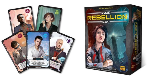 Coup: Rebellion G54 is a new standalone game that takes the same simple Coup mechanisms and rules, but with a variable deck of 25 characters, and in each game you choose to play with five out of the 25, so the relative power and advantage of each character changes from game to game. This is more of a gamer's game than the original Coup as you can create a deck to increase bluffing, deduction, negotiation or luck.