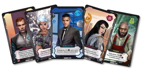 In Coup: Rebellion G54 (G54), the last player with influence in the game wins, with influence being represented by face-down character cards in your playing area. Before each game players choose five character roles from a randomized deck. Characters have a unique variable power, and the deck is formed by three iterations of each role for fifteen cards total.