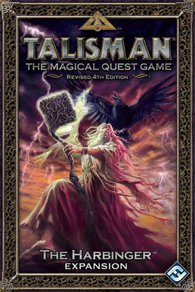 The Harbinger. This expansion introduces the Harbinger, a mysterious figure of prophecy and doom who wanders the realm, with destruction following everywhere he walks. As the demons and plagues of the new Harbinger deck wreak havoc thourought Talisman, three new powerful characters seek the Crown of Command. That quest becomes more dangerous than ever before: cursed followers lie in wait for fresh prey, flames descend from the darkened skies, and the dead crawl from their tombs.