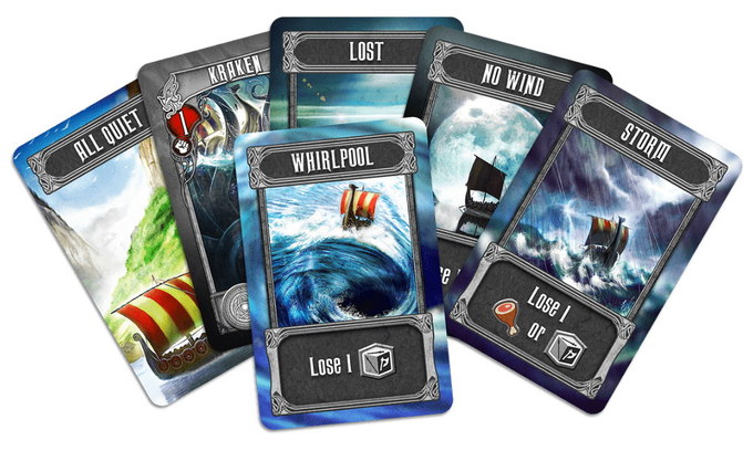 Placing workers allows for the collection of resources and warriors, which players may then send on journeys to neighboring villages or across the sea to defeat monsters and gain the glory they need for victory. Resources are used to carve runes, build ships, and feed your followers. Viking warriors (custom dice) do battle with the myriad enemies the town faces.