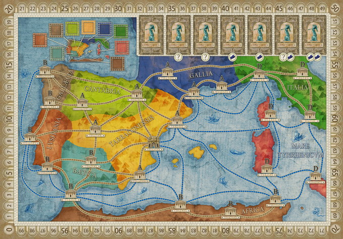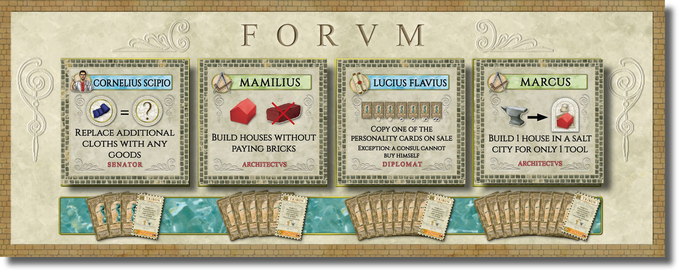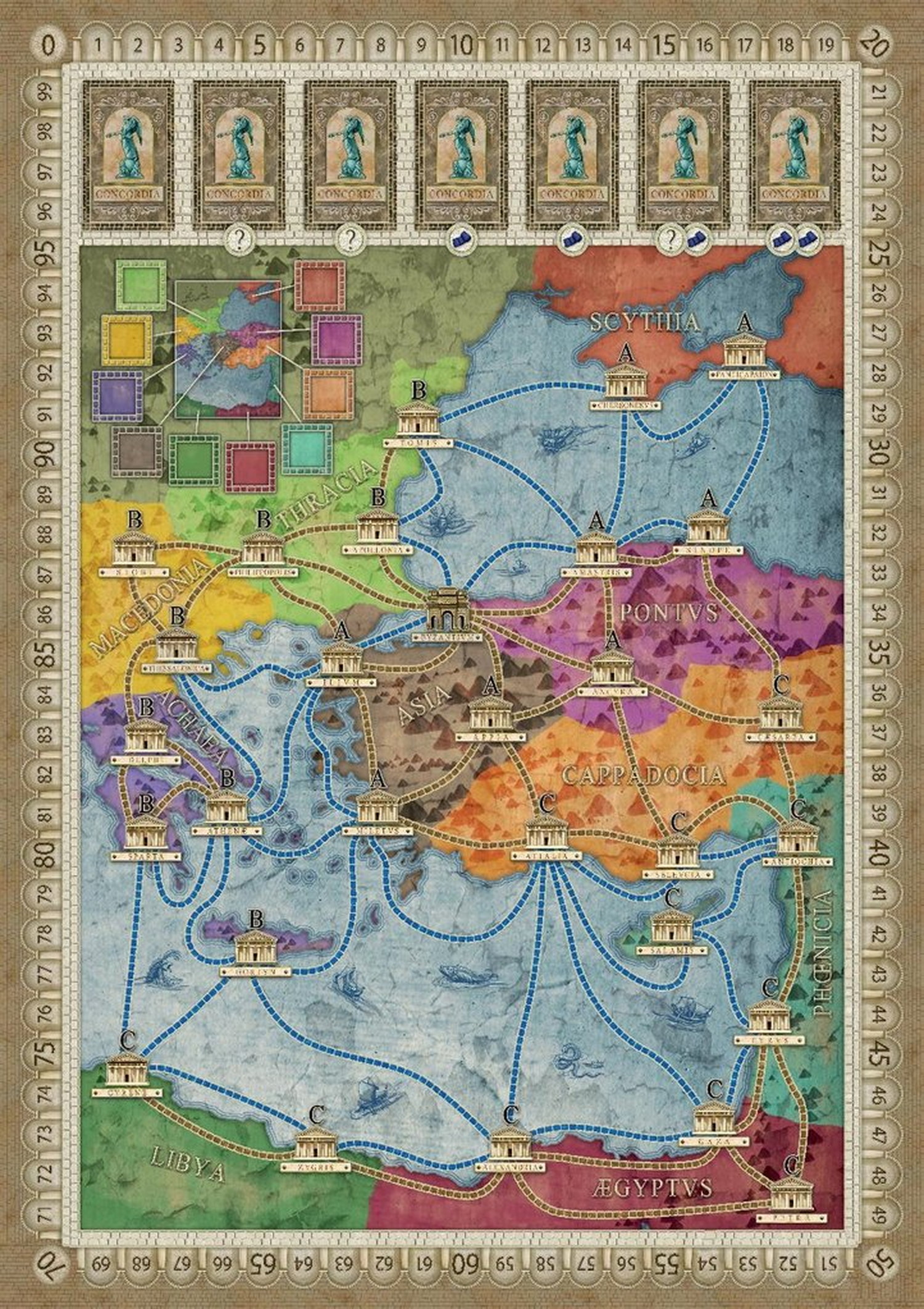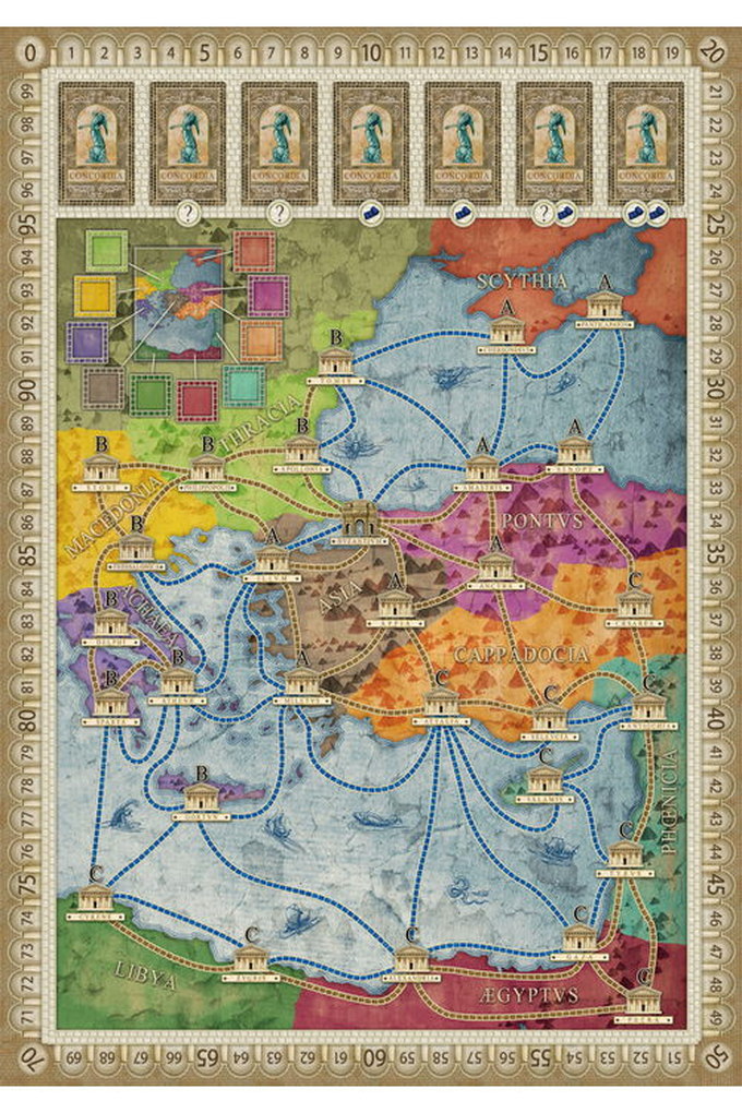 The cards are all different, can be acquired during the game, and salt your game with new strategic challenges! Some cards have permanent effects, others return to stack after using. Both the sixth commodity and the new cards can be played with the base game and the Britannia expansion as well, thus giving even more variety.