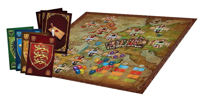 In Royals, players take on the roles of the great noble houses of the 17th century, fighting for supremacy in Europe at that time. With the help of the right country cards, they occupy influential positions and obtain bonuses for this in the form of victory points. The higher the rank of the title associated with the position, the more country cards required. Already-occupied positions can be contested by playing intrigue cards.