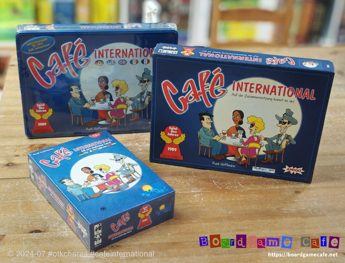 If there is no seat available at the tables, guests may also sit at the bar. The purpose of the game is to bring as many people into the Café International as possible, according to these rules and by placing your small guests at the tables or at the bar in a clever way.