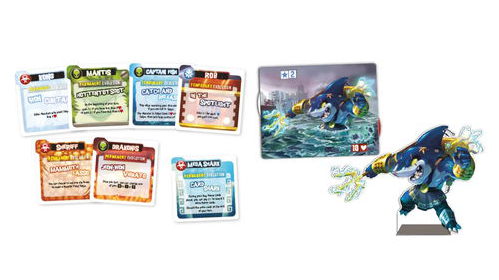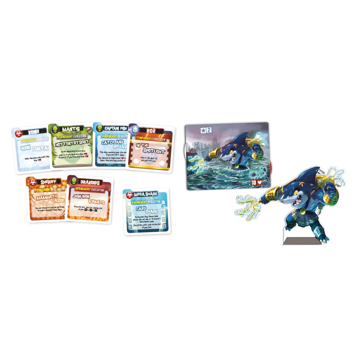 With King of New York: Power Up!, Captain Fish, Sheriff, and their fellow monsters now have two unique sets of evolution cards (112 cards total) for both King of New York and King of Tokyo — and a new challenger joins them: Mega Shark!
