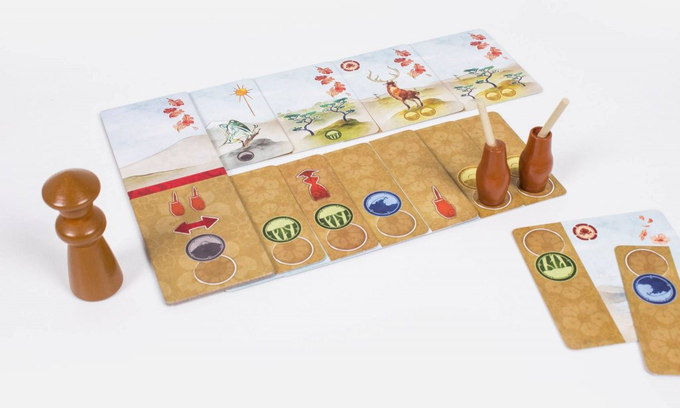 1840: In Kanagawa, the great bay of Tokyo, the Master Hokusai decided to open a painting school to share his art with his disciples. You are one of these disciples, and more than anything, you want to prove yourself worthy of the “crazy, old artist”. Follow his teachings to expand your studio and paint your preferred subjects (Trees, Animals, Characters, Buildings), all while paying attention to the changing of the seasons in order to make the most harmonious print… the one that will become the work of your lifetime!