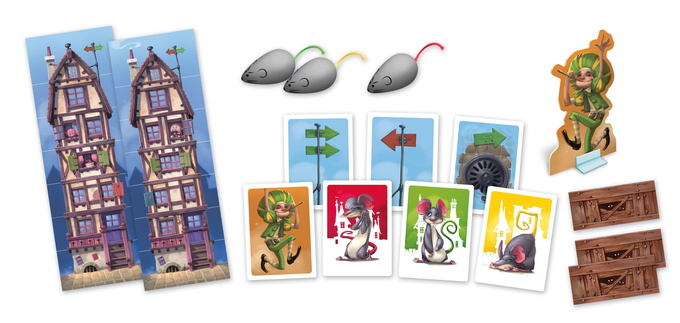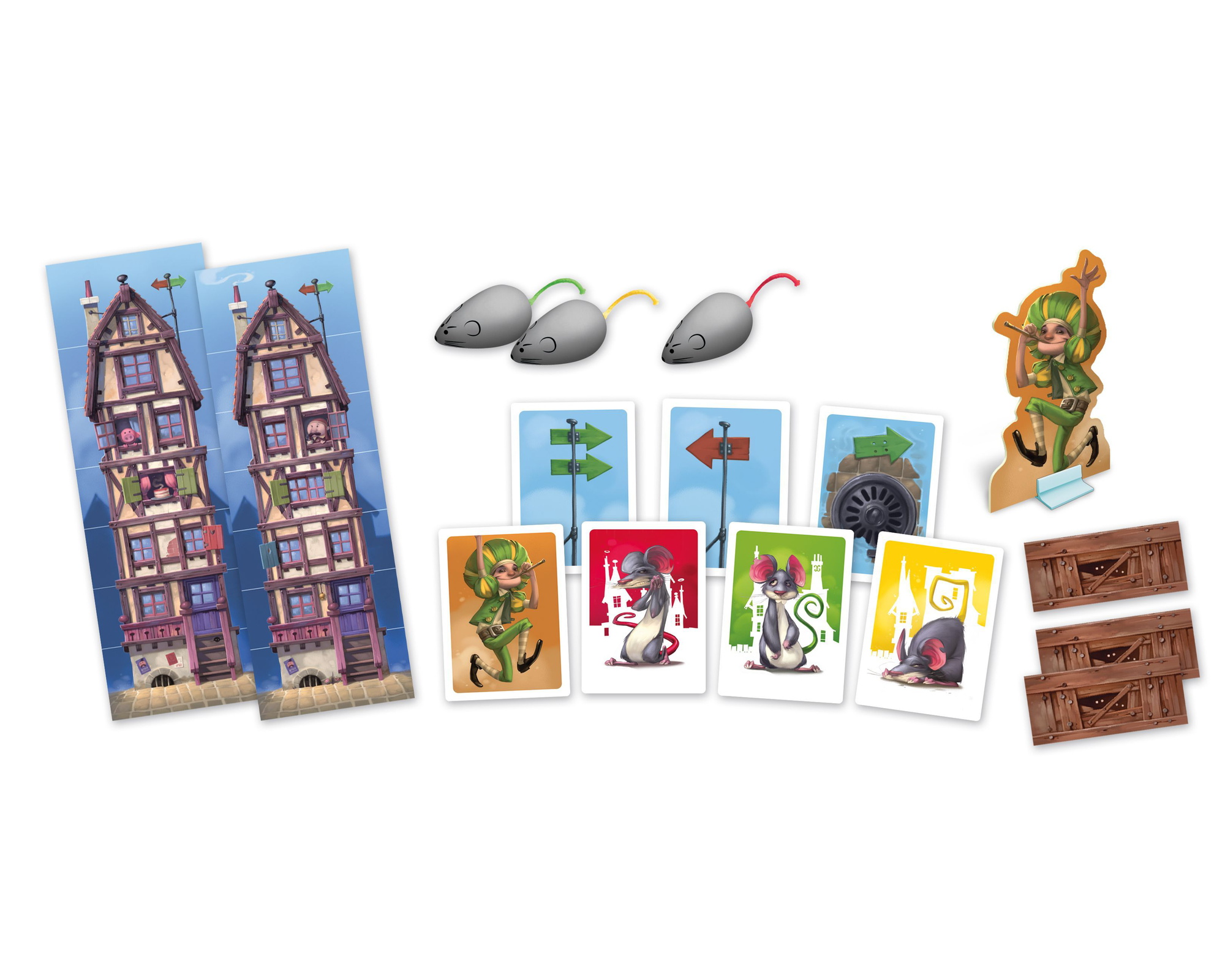 You live in Hamelin, a town infested by rats. The easiest way to get the rats out of your house is to send them to your neighbors. Whenever too many rats are jammed into a house, its occupants get desperate and move out! The player who can best keep the rats out of his house wins!