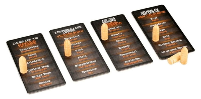 The Forensic Scientist has the solution but can express the clues only using special scene tiles while the investigators (and the murderer) attempt to interpret the evidence. In order to succeed, the investigators must not only deduce the truth from the clues of the Forensic Scientist, they must also see through the misdirection being injected into the equation by the Murderer and Accomplice!
