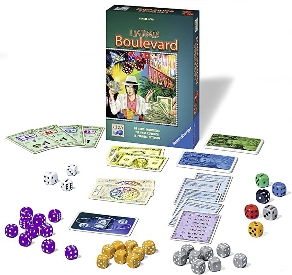 Developer Stefan Brück at alea describes Las Vegas as "an easy, dice-rolling, fun-and-luck game with a lot of interaction and 'schadenfreude'". Who doesn't love schadenfreude? (Well, other than those being schadened, I suppose...)