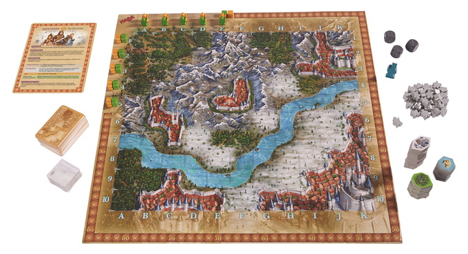 In Adventure Land, King Agamis rules from his castle. Rich cities, vast forests and rugged mountain ranges dominate the country. The large river is known to be lined with gold and the forests filled with medicinal herbs, but dangers lurk beneath the fog! Only the bravest adventurers dare to face the challenges. When you move your adventurer tactically and bravely fight the fog creatures, you'll win the favor of the king. Illustrated by Franz Vohwinkel and designed by acclaimed duo Wolfgang Kramer and Michael Kiesling who between them have won the highly coveted Spiel des Jahres award 5 times.