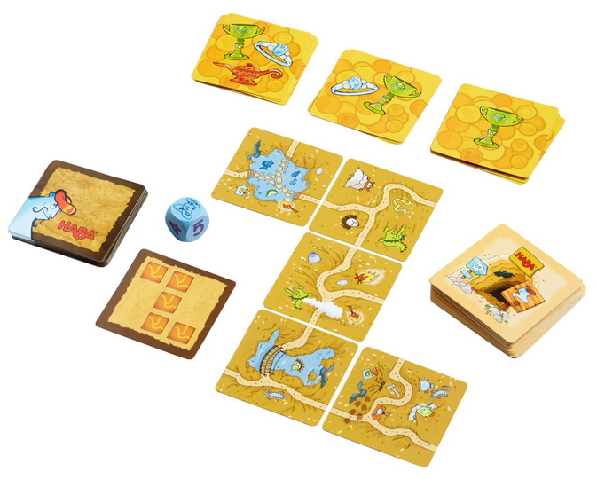 In order to charm the treasures away from the mighty genie the players have to find the correct path through the mysterious cavern. However, the treasure map has been torn into many pieces. Whoever has a quick eye for combinations and can piece together the map won’t lose his way and will find the most treasure. An intriguing lickety-split, brainteaser game for 2-4 players ages 6-99.