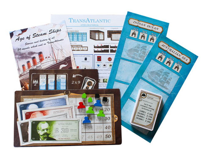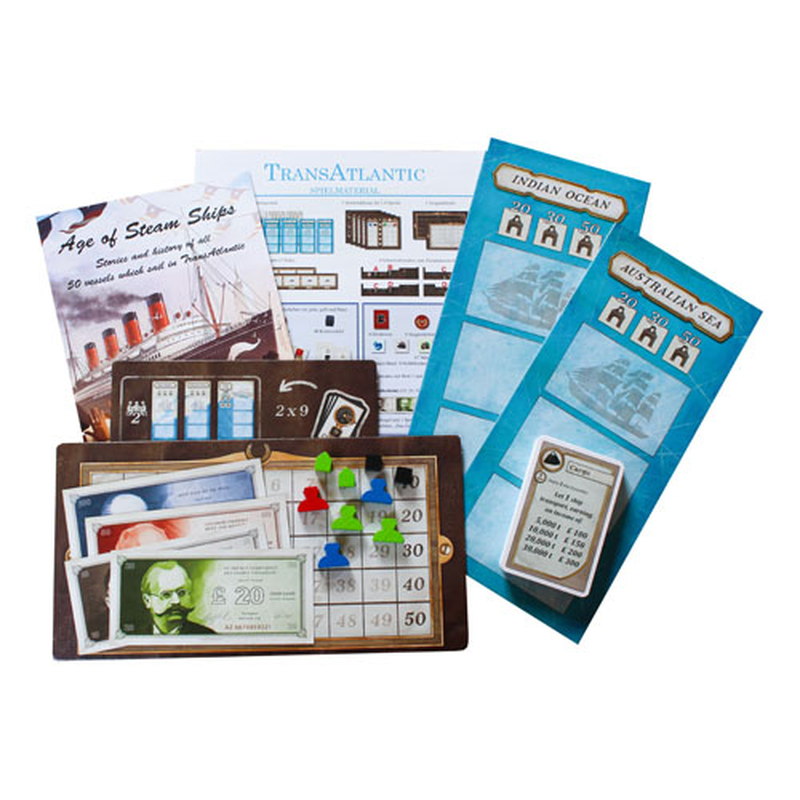 In Transatlantic, 2 to 5 players lead their own shipping companies, which transport freight, mail, and passengers around the globe. They purchase new steamships from the market, each of them historical with their individual technical data (tons, knots etc.). Competition is tough, especially in the North Atlantic where winning the "Blue Riband" is not only a matter of prestige, but may also be a profitable investment. In order to let a shipping company flourish, purchasing the best steamships is not enough, if one fails to acquire enough coal bunkers and trade posts as well.