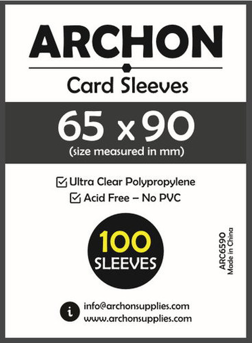 This is card protection sleeves from ARCHON 65 X 90 MM. This pack contains 100 sleeves per pack and is designed to protect any card that is sized at 65 X 90 MM or smaller.