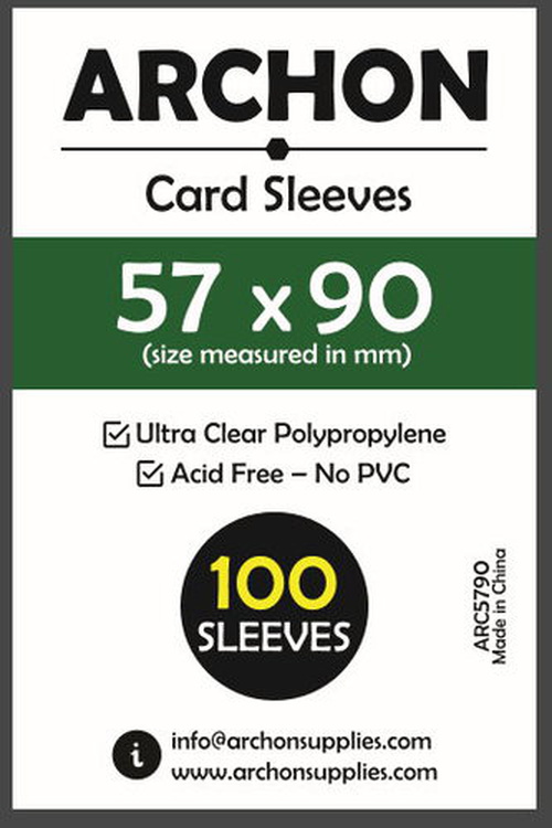 This is card protection sleeves from ARCHON 57 X 90 MM. This pack contains 100 sleeves per pack and is designed to protect any card that is sized at 57 X 90 MM or smaller.