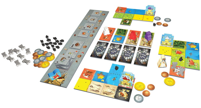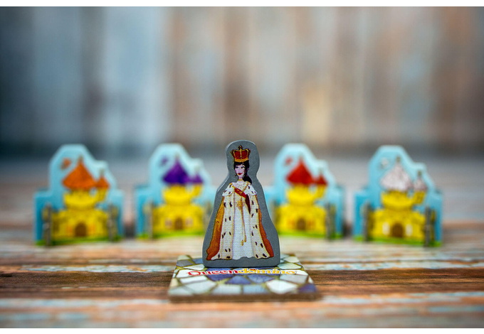 Build up the most prestigious kingdom by claiming wheat fields, forests, lakes, grazing grounds, marshes, and mountains. Your knights will bring you riches in the form of coins — and if you make sure to expand the towns on your lands, you will make new buildings appear, giving you opportunities for new strategies. You may win the Queen's favors ... but always be aware of the dragon!