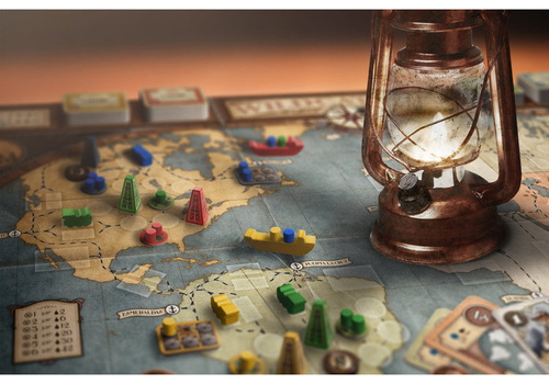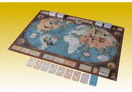 The game lasts seven rounds with four players, and the game set-up is the same for each player, with three rigs, two trains, one tanker and one refinery being placed on the board. The game board features a world map divided into eight areas where you can find oil. Players choose an open area card and get money to build rigs, tankers, trains and refineries, after which they can buy oil actions. The players work together in an oilfield to find oil at a lower cost. The players transport oil together to the refineries, using trains and tankers from other players to deliver oil to the refineries – and all with one purpose: deliver more oil than the other players by the end of the game.