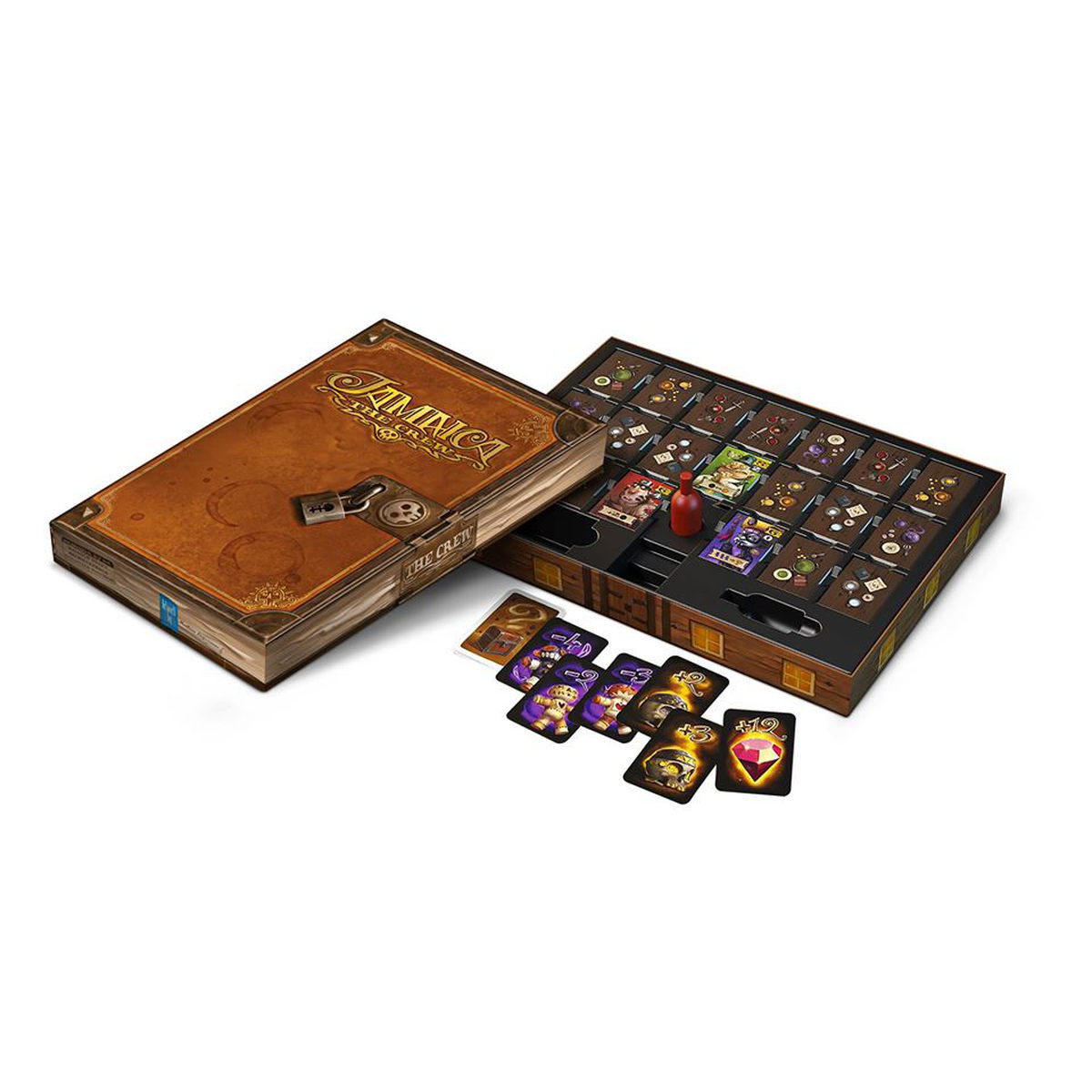 Jamaica: The Crew is a set of twenty characters, each with a special power, that add flavor to the game without any big changes in the rules. The characters may be hired when you're able to pay for the fee of a harbor, and they are "loaded" like any other resource, following the same rules.