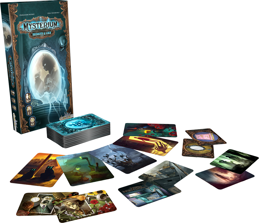 Mysterium: Secrets & Lies consists of six new characters, six new locations, six new items, and 18 story cards. This latter group of cards can replace the object cards in the game, with each card representing one way in which the ghost died. Now instead of trying to get each investigator to identify an object — a singular item that wouldn't have much nuance to it — the ghost must instead use the dream cards to convey the story of their demise, something far more challenging.
