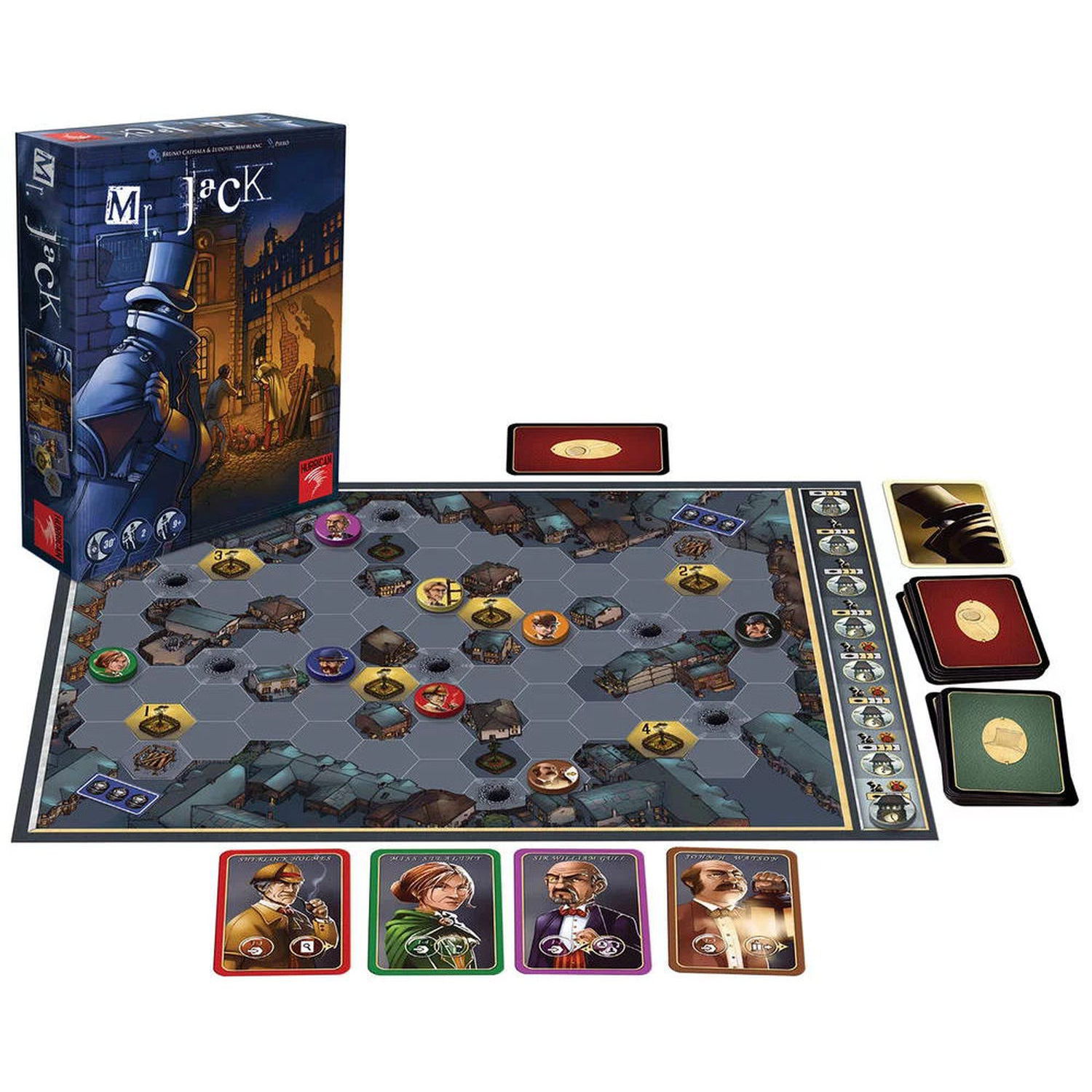 In Mr. Jack, one of the two players represents Jack the Ripper, who will be one of the eight characters on the board. This player knows which character is Mr. Jack, and his goal is to flee from the district as soon as possible (or avoid being accused for eight turns). The other player represents an independent investigator (not represented on the board) who tries to guess the identity of Jack — but he can make only one accusation during the game!
