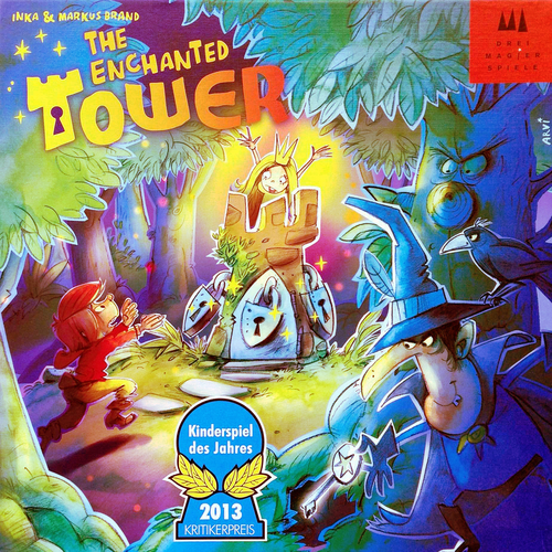 In Enchanted Tower, one player plays the sorcerer and at the start of the game he hides a key under one of 16 spaces on the game board. The other players collectively take the part of Robin, who tries to find the key before the sorcerer can reach it. No matter who finds the key first, though, that player gets to try the key in one of the six locks on the tower; if he chooses the right one, the princess jumps free of the tower and that player wins. If not, the sorcerer hides the key once again, and everyone moves back to their starting locations.