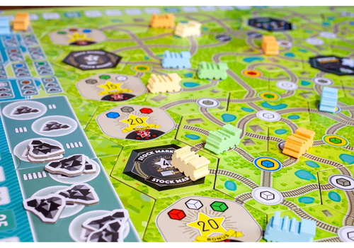 In Whistle Stop, you make your way west across the country, using your fledgling railroad company to build routes, pick up valuable cargo, and deliver needed goods to growing towns, creating a network of whistle stops that you and your competitors can leverage as you continue to expand your networks. Along the way, you gain shares in other railroads and watch your reputation soar with each successful delivery before making a final push to complete long hauls to the boom towns of the West.