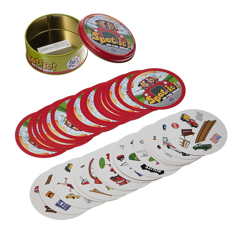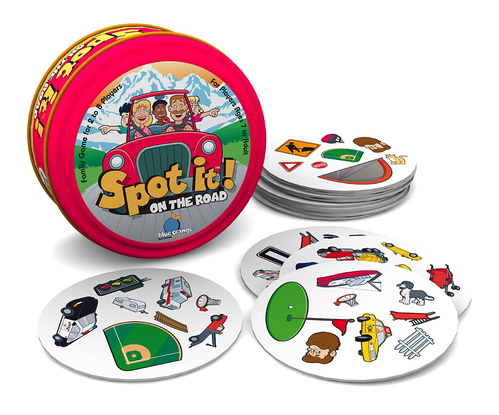 Spot it! On the Road uses the same game play as Spot it!, a simple pattern recognition game in which players try to find an image shown on two cards, but includes a new twist.