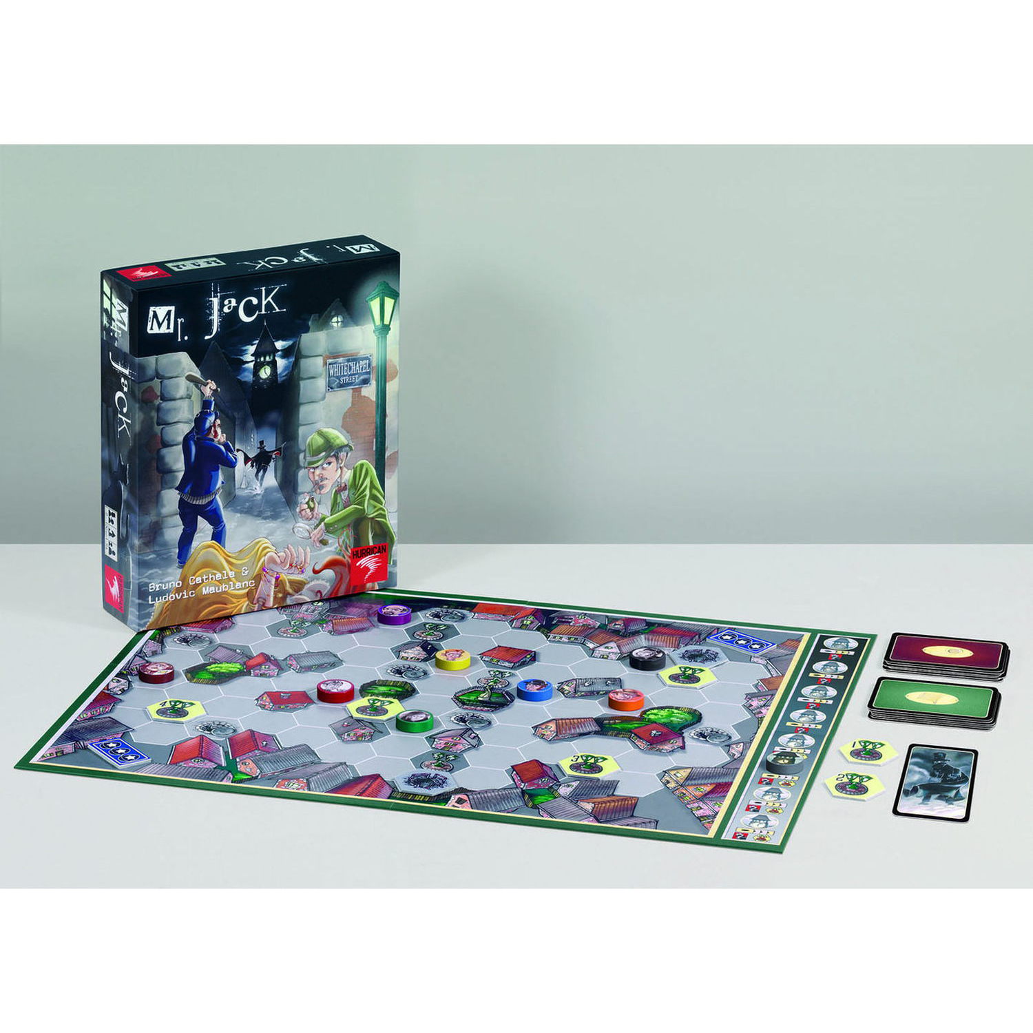 In Mr. Jack, one of the players must help the investigators. By moving each character into light or shadow, the detective player makes successive deductions to uncover which investigator is in fact Jack, then he/she must try to catch the infamous ripper.