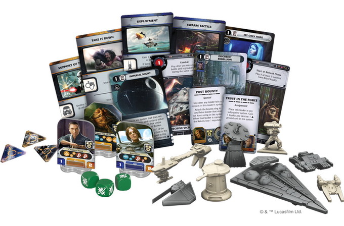Altogether, Rise of the Empire introduces eight new leaders, thirty-six plastic miniatures, five target markers, two attachment rings, three new dice, and more than one-hundred new cards. You'll find U-wings, TIE Strikers, Nebulon-B frigates, and the Interdictor. You'll gain new ways of subverting your opponent's plans, and you'll discover a whole new chapter in your ongoing Galactic Civil War!