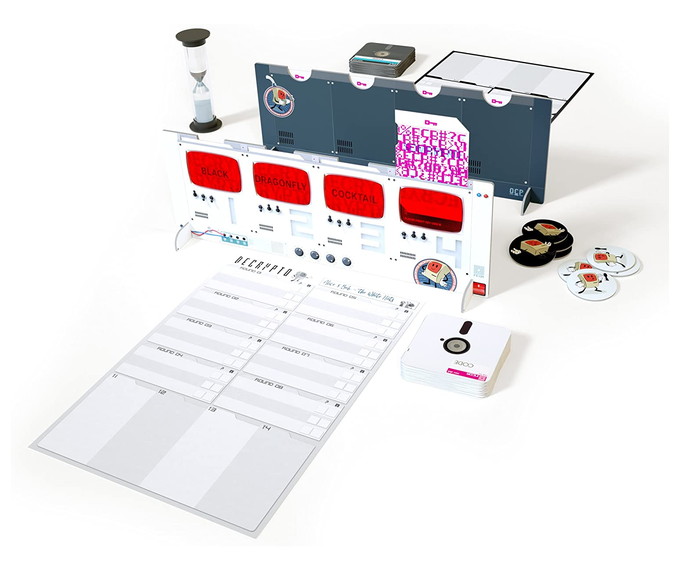 Players compete in two teams in Decrypto, with each trying to correctly interpret the coded messages presented to them by their teammates while cracking the codes they intercept from the opposing team.