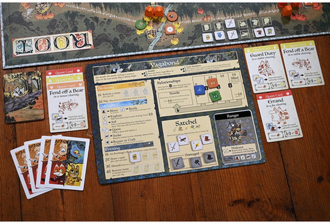 The nefarious Marquise de Cat has seized the great woodland, intent on harvesting its riches. Under her rule, the many creatures of the forest have banded together. This Alliance will seek to strengthen its resources and subvert the rule of Cats. In this effort, the Alliance may enlist the help of the wandering Vagabonds who are able to move through the more dangerous woodland paths. Though some may sympathize with the Alliance’s hopes and dreams, these wanderers are old enough to remember the great birds of prey who once controlled the woods.