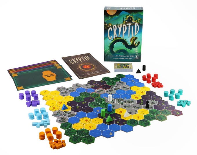 Cryptid is a unique deduction game of honest misdirection in which players must try to uncover information about their opponents' clues while throwing them off the scent of their own. Each player holds one piece of evidence to help them find the creature, and on their turn they can try to gain more information from their opponents. Be warned; give too much away and your opponents might beat you to the mysterious animal and claim the glory for themselves!