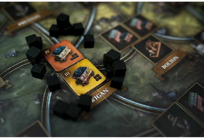 You must develop, build, and establish your industries and network so that you can capitalize demand for iron, coal and cotton. The game is played over two halves: the canal phase and the rail phase. To win the game, score the most victory points (VPs), which are counted at the end of each half.