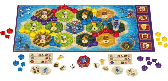 Madagascar Catan Junior takes place on Madagascar island where 2 to 4 players build circus tents and wagons along the fields of the island. Using the appropriate side of the map either 2 or 3/4 players can join as the characters from the movie: Alex, Gloria, Marty or Melman.