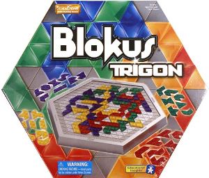 Blokus Trigon is a chip off the old Blokus, but with a super-challenging twist! A new dimension of triangular-created Trigon pieces must be fit, tip to tip with your own pieces, on the hexagonal game board. Angles jut in every direction, so new strategies are always evolving. It’s the Bermuda Triangles (486 in all) of strategy games. Think carefully! You can block -- and be blocked -- at any moment! Quick to learn, challenging to master.