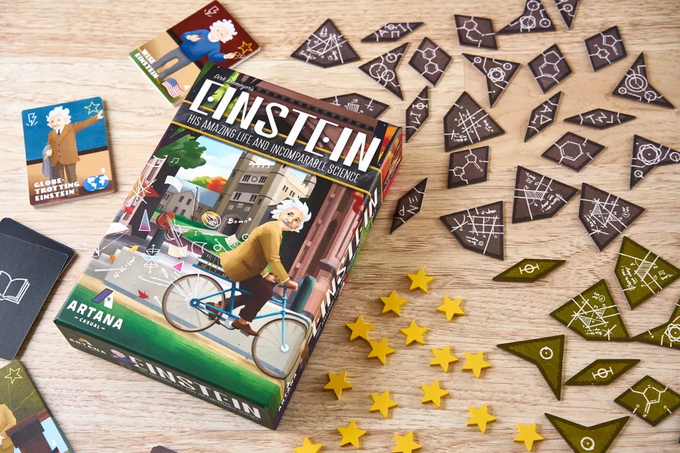 As Albert Einstein transcended science and became a recognizable figure around the world, so the game Einstein focuses on simple rules and quick playability, an accessible strategy game for gamers and non-gamers alike.