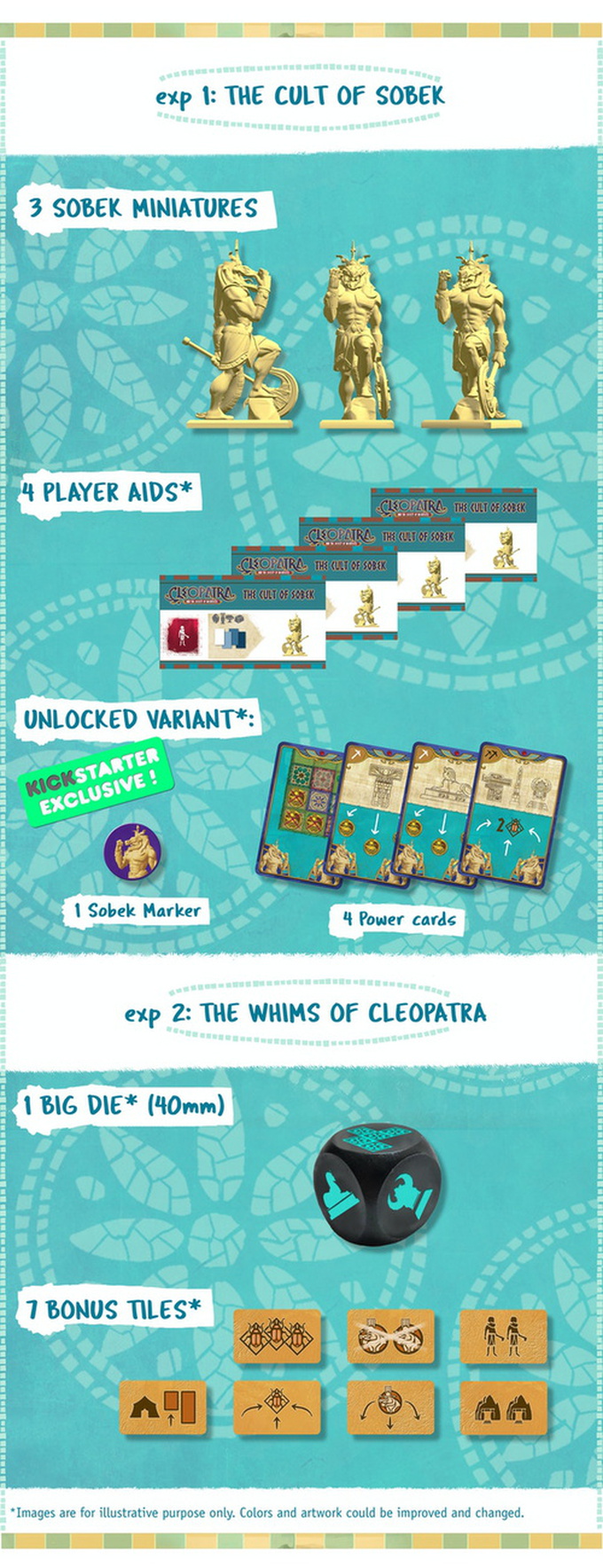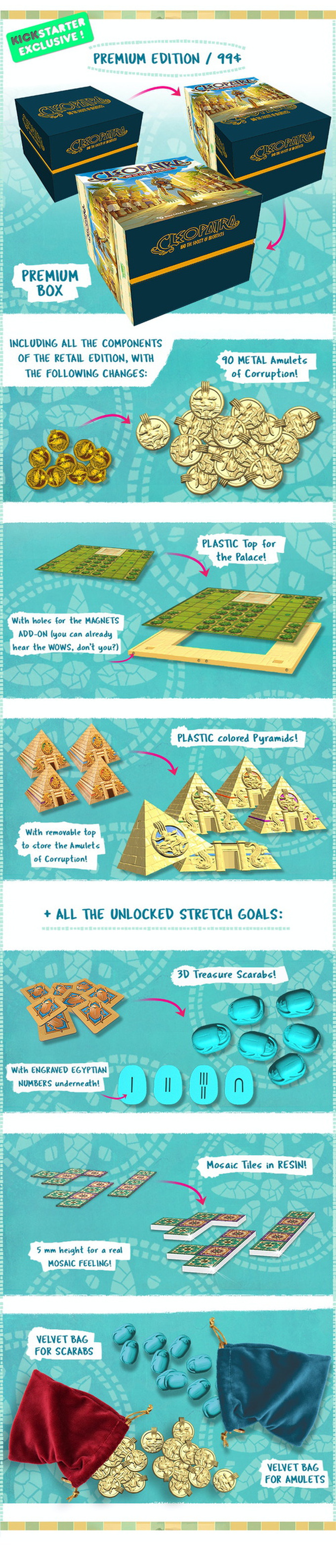 This Kickstarter Premium Edition includes two expansiions - The Cult of Sobek, and The Whims of Cleopatra - and all unlocked stretch goals.