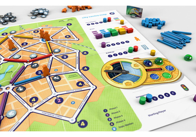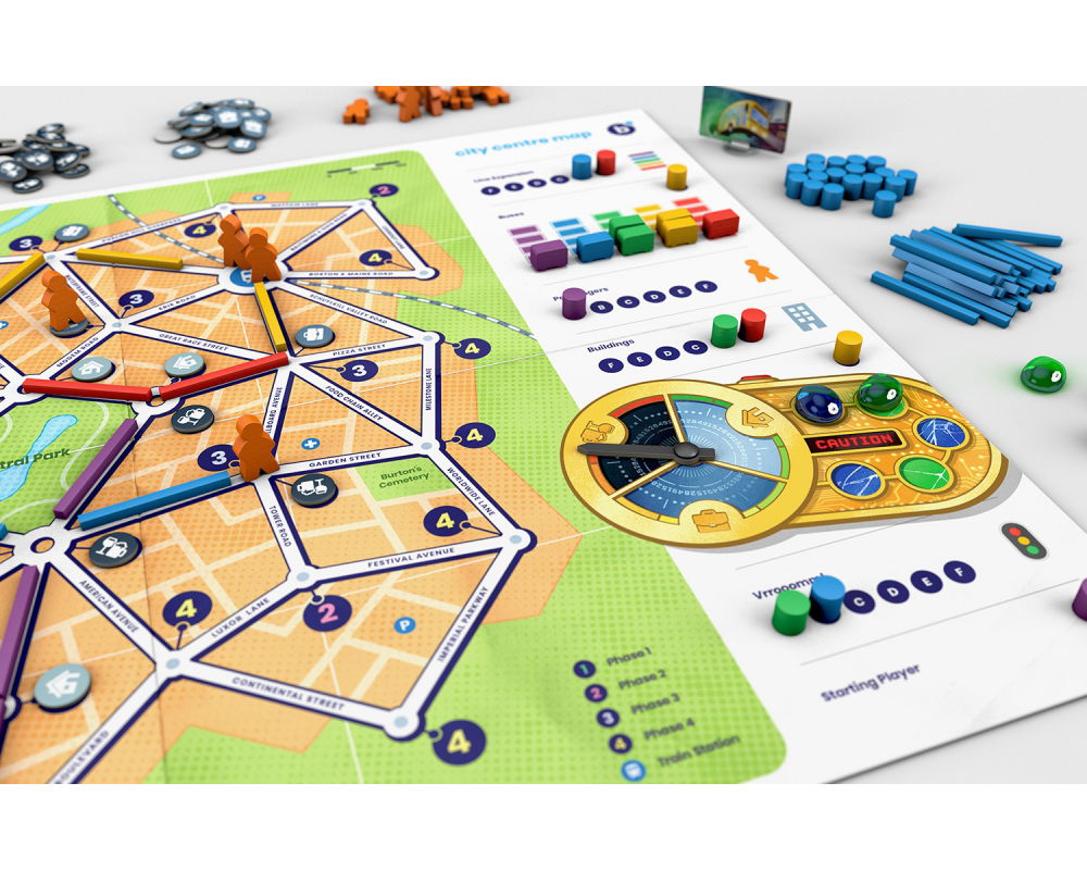 BUS is a game about the development of public transport in a city that is expanding quickly. The citizens are busy travelling up and down between their houses, the office, and, most importantly, the pub. Your task as a player is to develop a busline which takes as many passengers as possible to the place they want to be. You do this by expanding your busline, developing new suburbs, luring new potential passengers to the city, and investing in more and more buses! But you can also try to ride just a bit earlier than other companies and steal their passengers away.