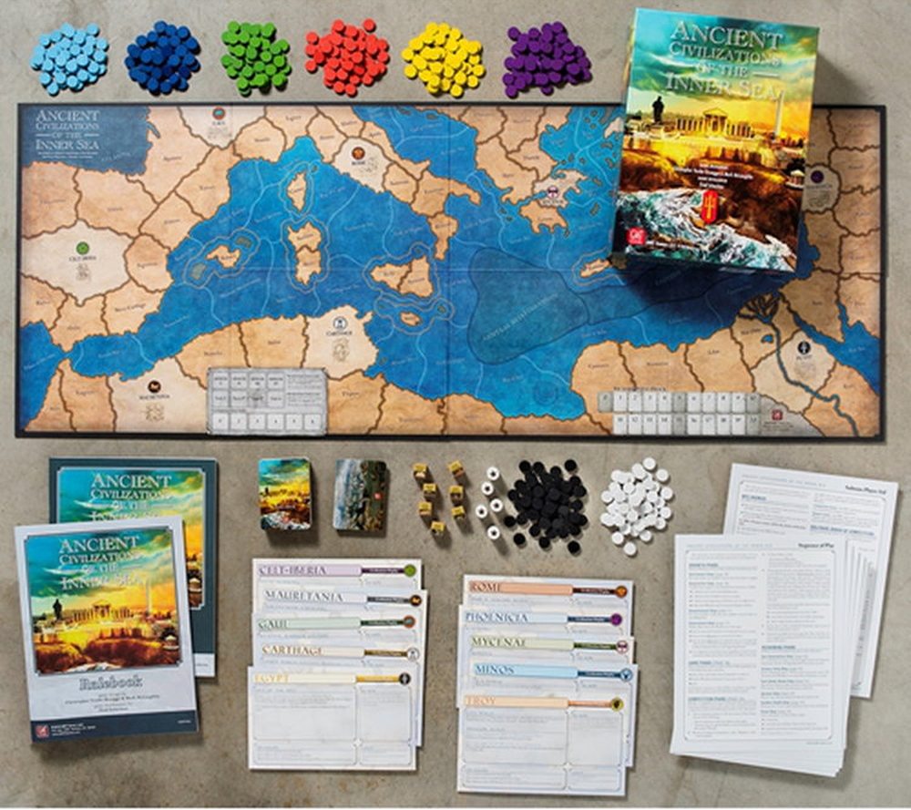With a very short rule book that lets players get into the game quickly, Ancient Civilizations of the Inner Sea is an exciting, fast-playing, easy-to-learn, easy-to-play but challenging to master and always different abstract game in which player's guide the legendary civilizations that surged and receded around the shores of the Mediterranean: which the Romans aptly called the Mare Internum, or Inner Sea.