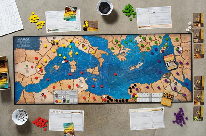 Ancient Civilizations of the Inner Sea allows you to create or conquer the great civilizations of the ancient Mediterranean in a single night, alone or with up to five other players - and without having to roll a single die!