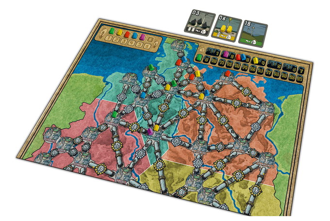 The objective of Power Grid is to supply the most cities with power when someone's network gains a predetermined size. In this new Recharged edition, players mark pre-existing routes between cities for connection, and then bid against each other to purchase the power plants that they use to power their cities.